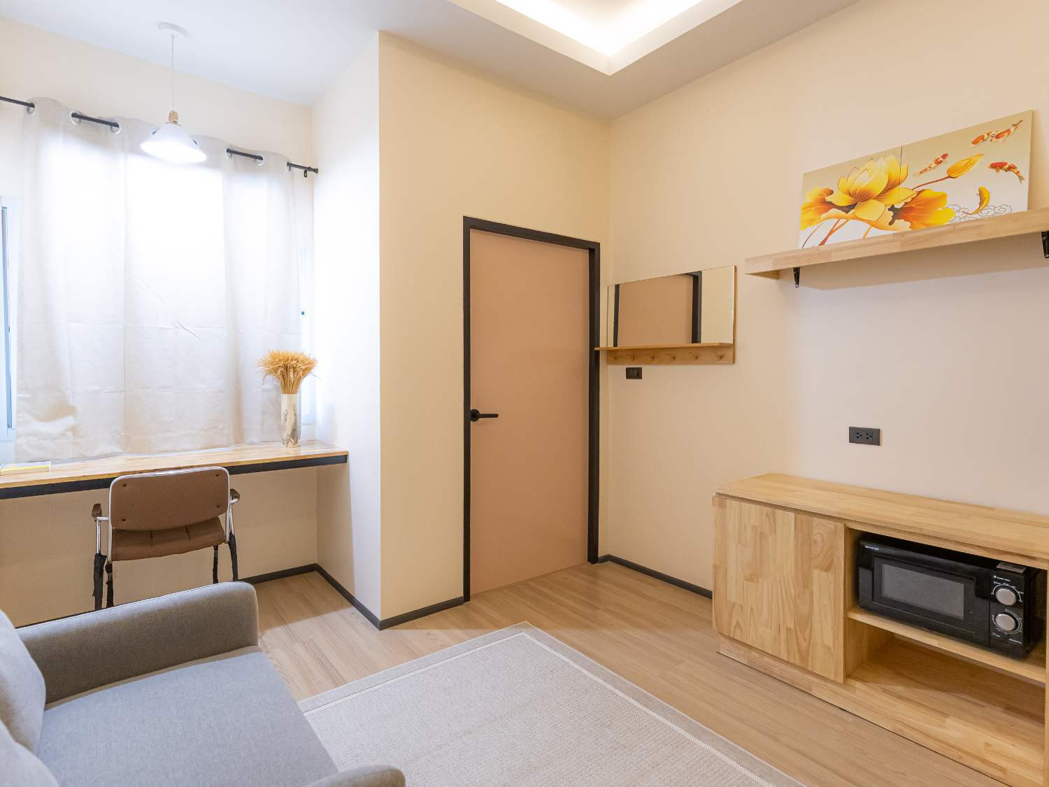 สัมผัสประสบการณ์บ้านพักที่โปรง โล่ง สบายตา พร้อมอุปกรณ์เครื่องใช้ไฟฟ้า เฟอร์นิเจอร์ แถมยังมีระเบียง และห้องน้ำภายใน เพื่อให้ตอบโจทย์ "ไลฟ์สไตล์ที่เรียบง่าย"